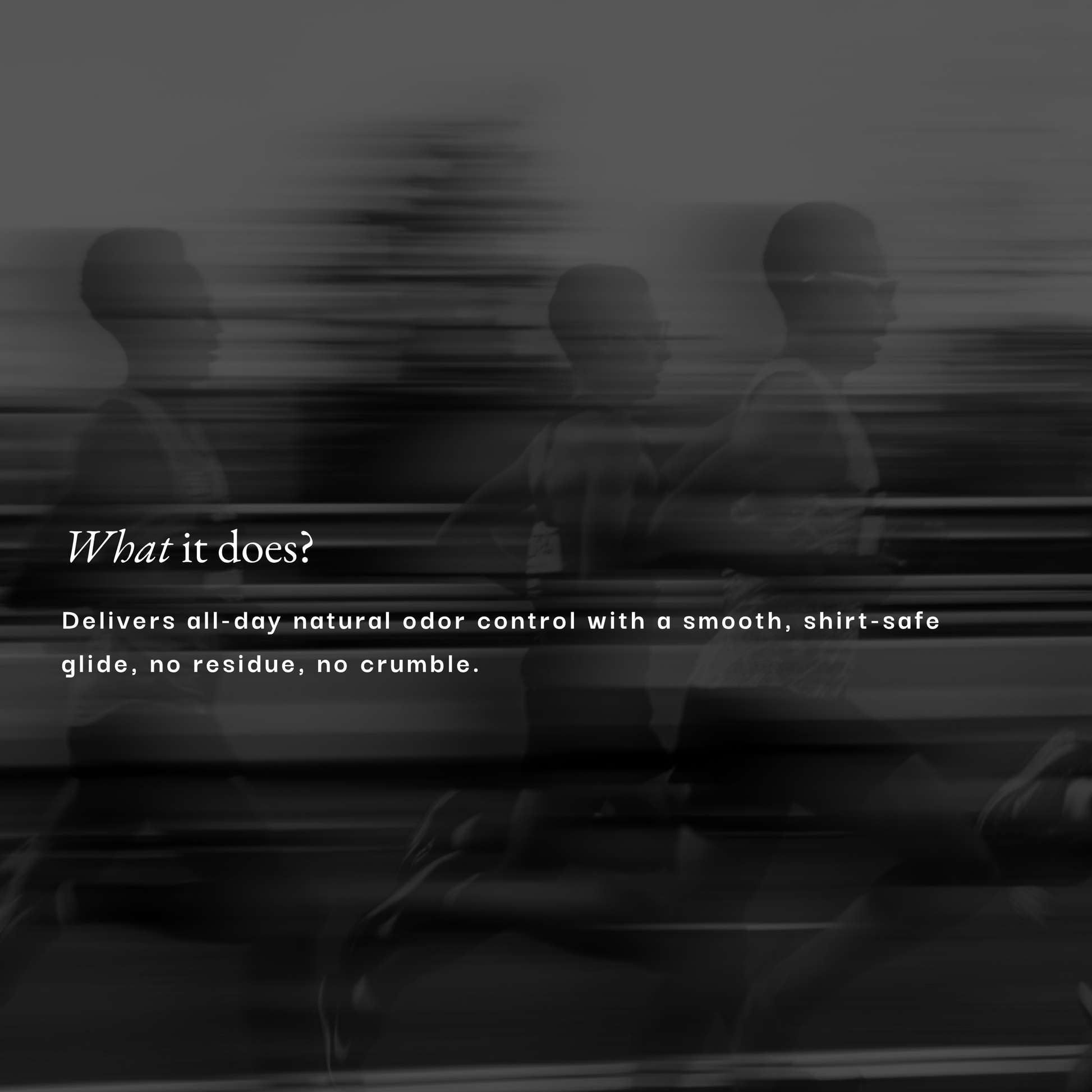 Our high-performance formula is designed to keep you odor-free for ~24 hours—even through intense training sessions and all-day wear. No need to reapply, no mid-day breakdown.